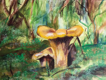 These paintings are done in acrylic and watercolor paint. Sometimes I paint on canvas and sometimes I paint on saws.
